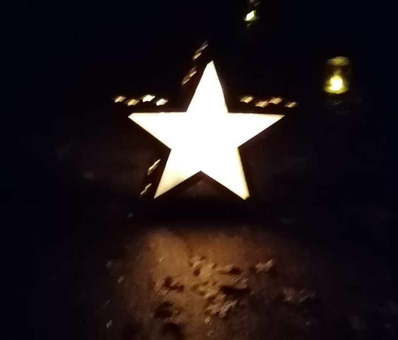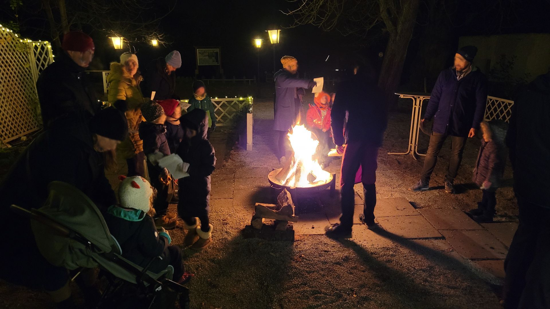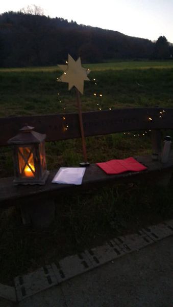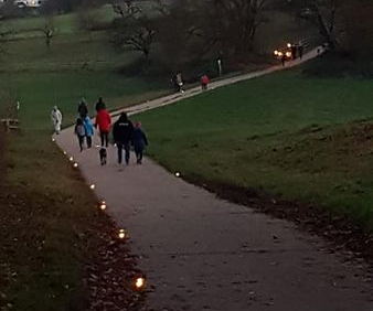 Am 1. Adventssonntag mit beginnender Dunkelheit starteten zehn Familien nacheinander alle 10 Minuten am Gimbacher Hof. Am Feuerkorb hörten sie dort den Beginn einer Hirtengeschichte, bevor sie mit Laternen, Taschenlampen oder Fackeln dem mit Kerzengläsern gesäumten Weg Richtung Fischbach folgten. An mehreren Stationen unterwegs ging die Geschichte weiter, bis sie wieder am Feuer endete. Zum Abschluss bekamen die Familien noch einen Segen und eine kleine Basteltüte mit auf den Heimweg.