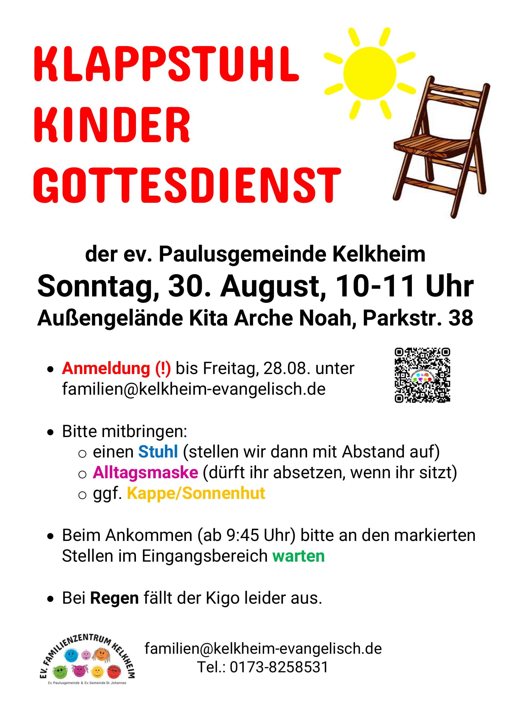 Von März bis Juni, außerdem an Ostern und Christi Himmelfahrt, haben wir für euch mit den Kigoteams der evangelischen Gemeinden Paulus und St. Johannes, Team-Kindern und der Kita Arche Noah "Zu-Hause-Zeit-Kindergottesdienste" aus mehreren Wohnzimmern und Gärten, zwei Kirchen, der Kita und einem Kigoraum gestaltet. Weiter Infos findet ihr auf der Seite "Zu-Hause-Zeit-Kindergottesdienst"