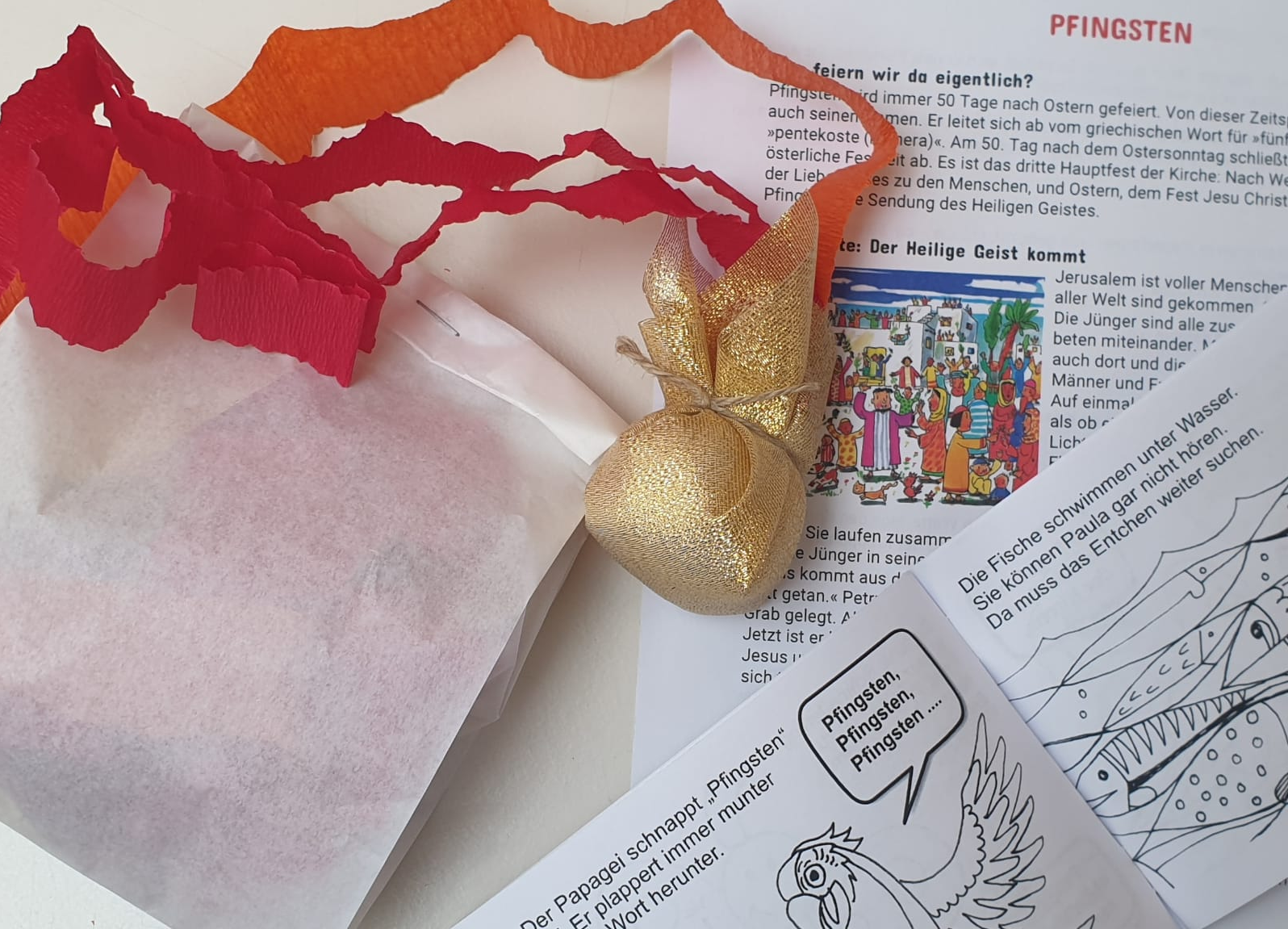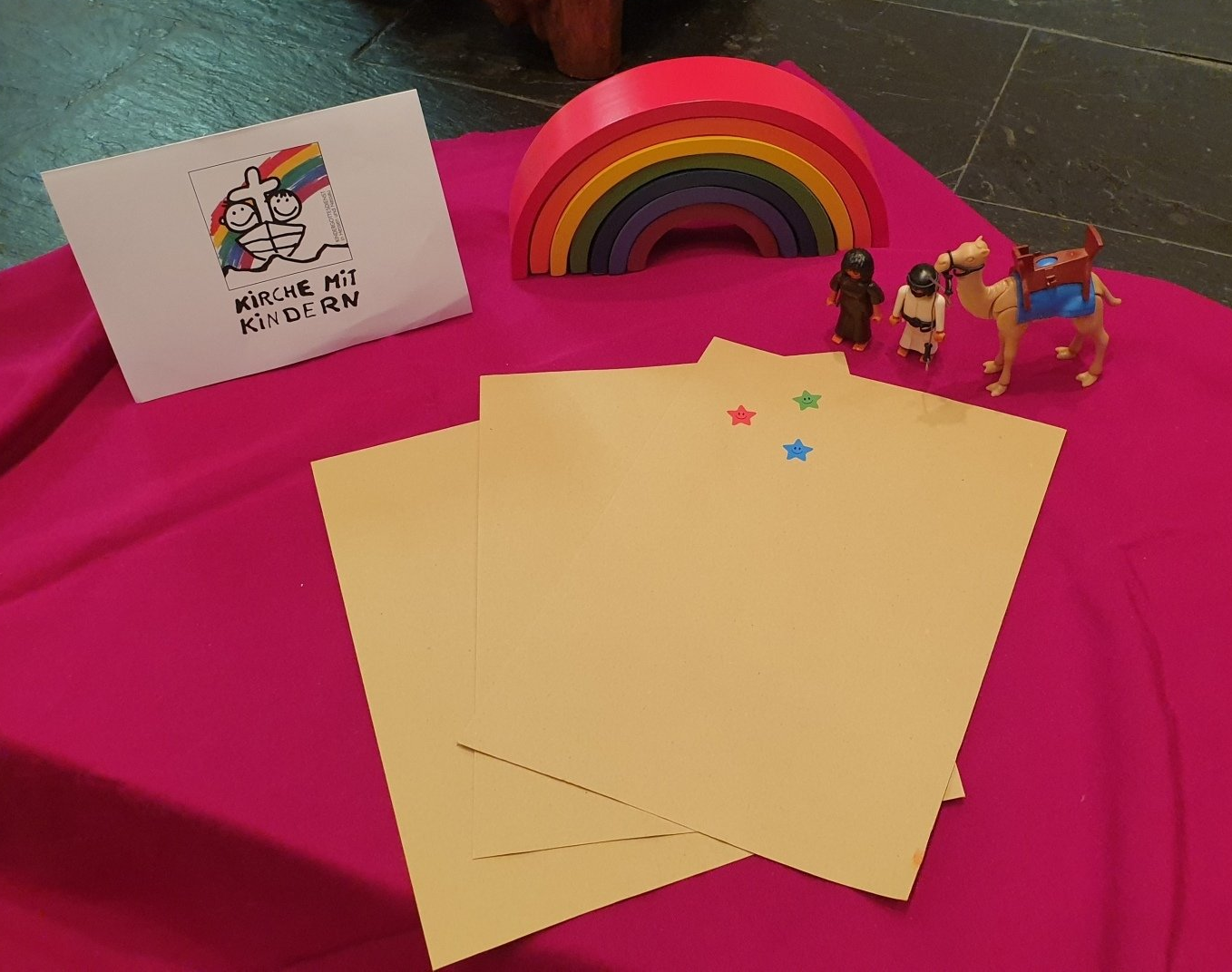 Interessierte Familien konnten sich zu beiden Feiertagen ein Materialpäckchen mit Vorlese-Geschichte, Infos, Bastelmaterial und LInk zum Playmobil-Video aus der Familienzentrums-Schatzkiste abholen.