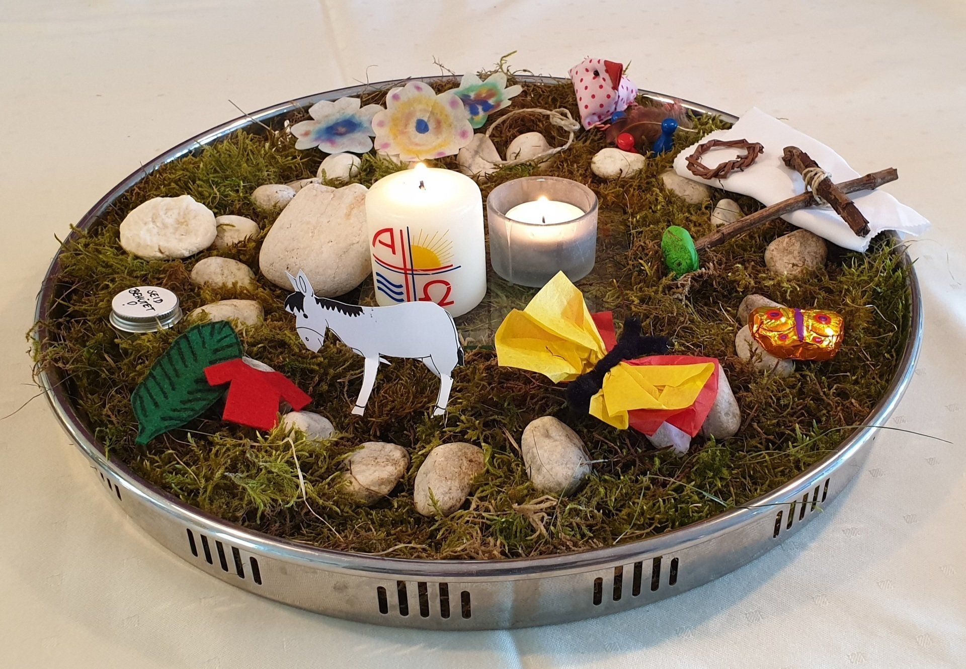 Nach zweijähriger Pause waren wir dieses Jahr sehr glücklich, 15 Kinder im Alter zwischen 5 und 13 Jahren zu unserem Oster-Kindergottesdienst in St. Johannes begrüßen zu können. Über verschiedene Stationen haben wir in unserer Kirche wichtige Stationen Jesu betrachtet. Mit Palmwedeln spielten wir den Einzug in Jerusalem nach, hatten eine Fußwaschung und nahmen das Abendmahl zu uns, hielten inne am Kreuz mit der Dornenkrone und schlossen mit der Grablegung. Anschließend haben sich die Kinder ihre eigene Osterkerze gebastelt. Bei herrlichem Wetter beendete die Osternestsuche im Kirchgarten und ein kleines Osterfrühstück diesen wunderbaren Ostergottesdienst.