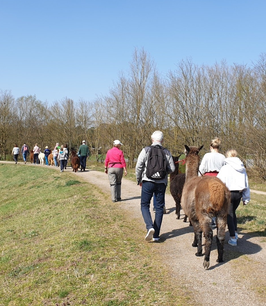 Im Juni, Juli und Oktober fand je eine Alpakawanderung mit Luna-Alpakas in Darmstadt statt. Eltern, Großeltern und Kinder unterschiedlichen Alters kamen zusammen, um einiges über Bolito, Nuspli und ihre Artgenossen zu lernen und dann mit ihnen eine große Runde spazieren zu gehen und zu kuscheln - wie schön in einer Zeit, in der es ständig um "Abstand halten!" geht...