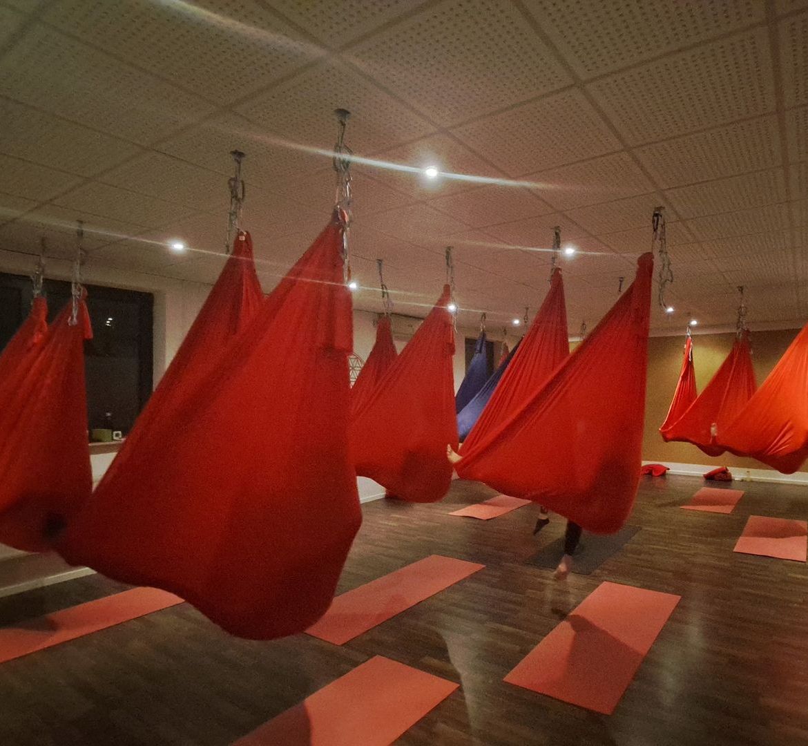 Entspannung, schaukeln, dehnen und einfache Yogaübungen im Tuch - genau das richtige an einem grauen Novemberabend.