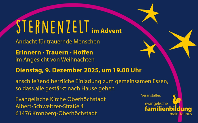 Das Sternenzelt-Team bietet gemeinsam mit Pfrin. Ulrich, Pfrin. Hering, Pfrin. Schuffenhauer eine Mitmach-Andacht im Advent für trauernde Menschen und Familien an.